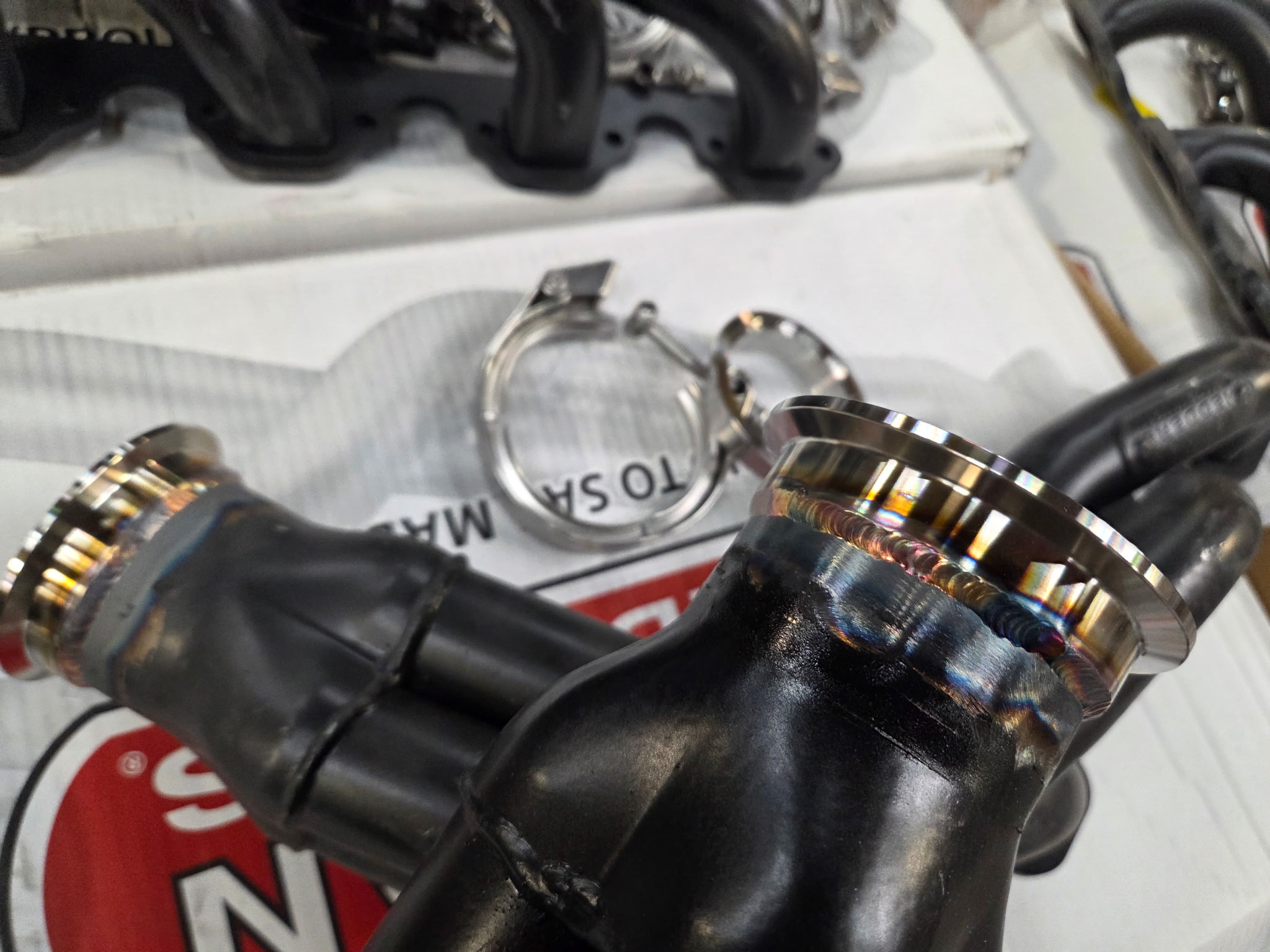 These are our in-house go-to headers once they have been converted with V-band clamps. These fit with the ZF5, E4OD, & C6 transmissions. We can also modify them for the larger Milodon oil pan.